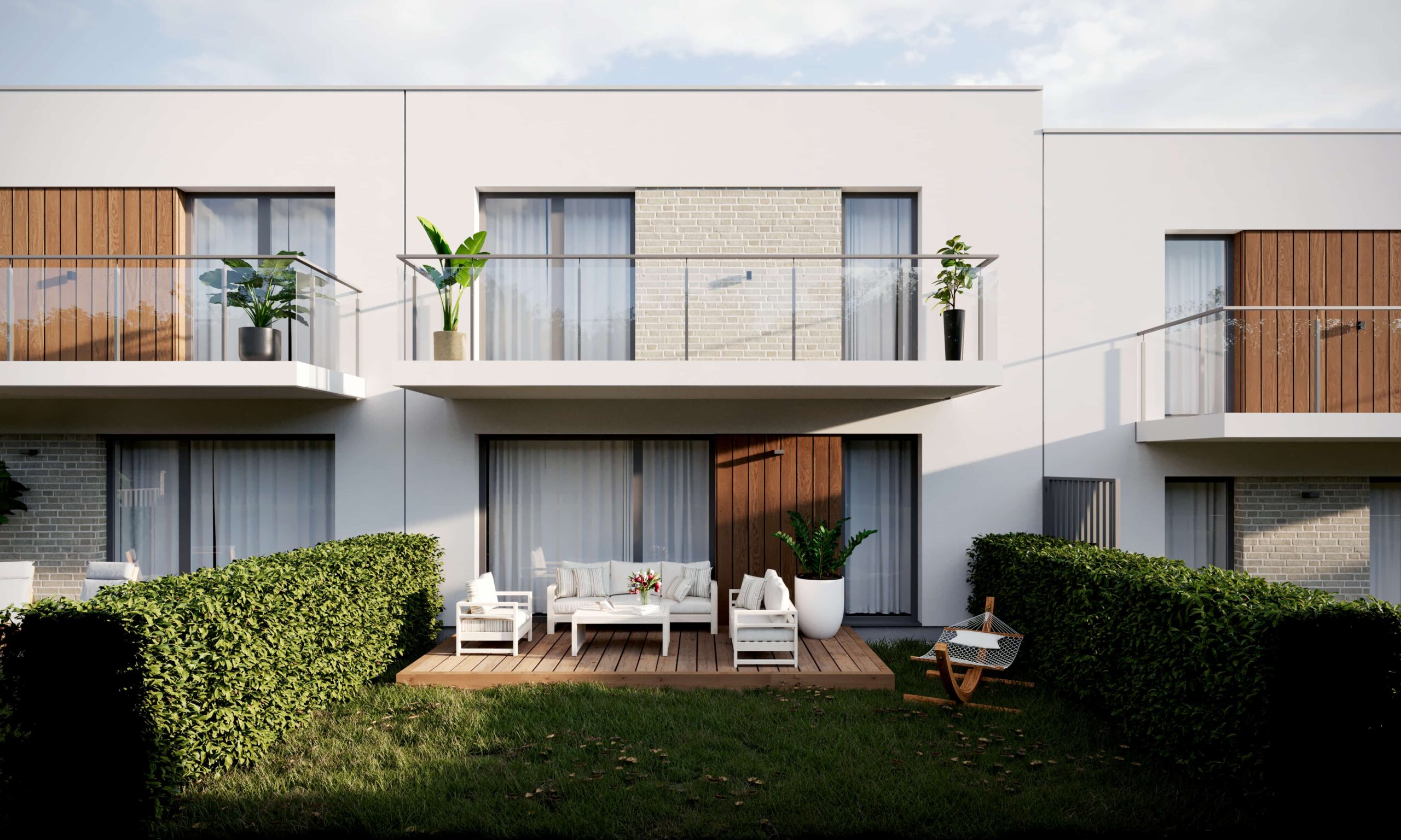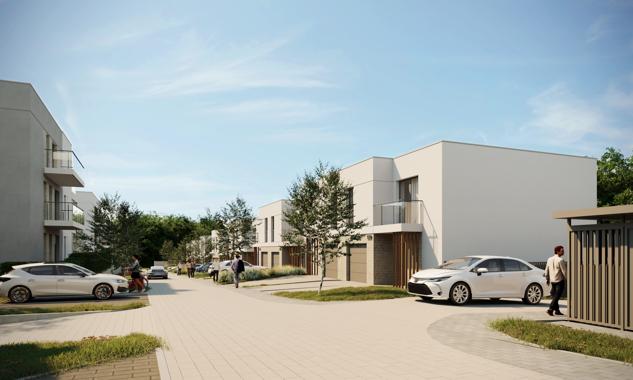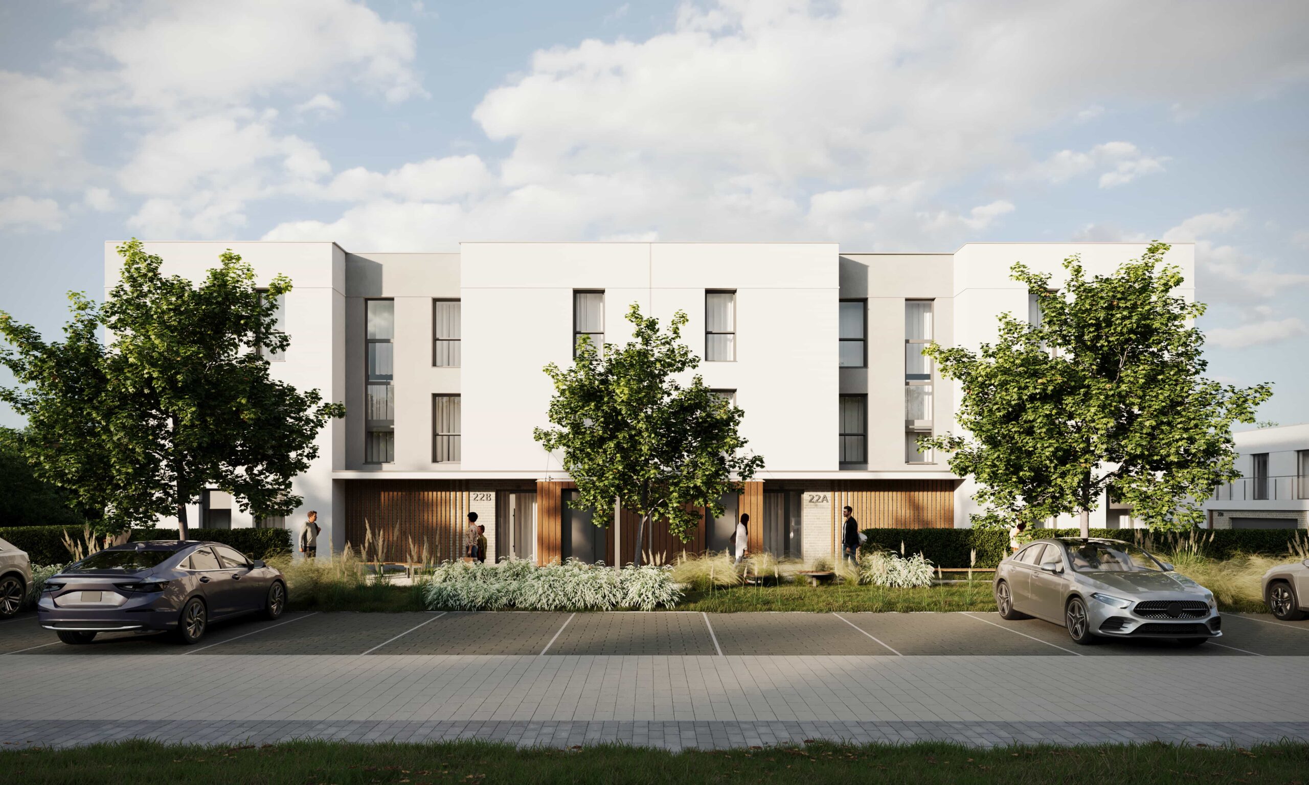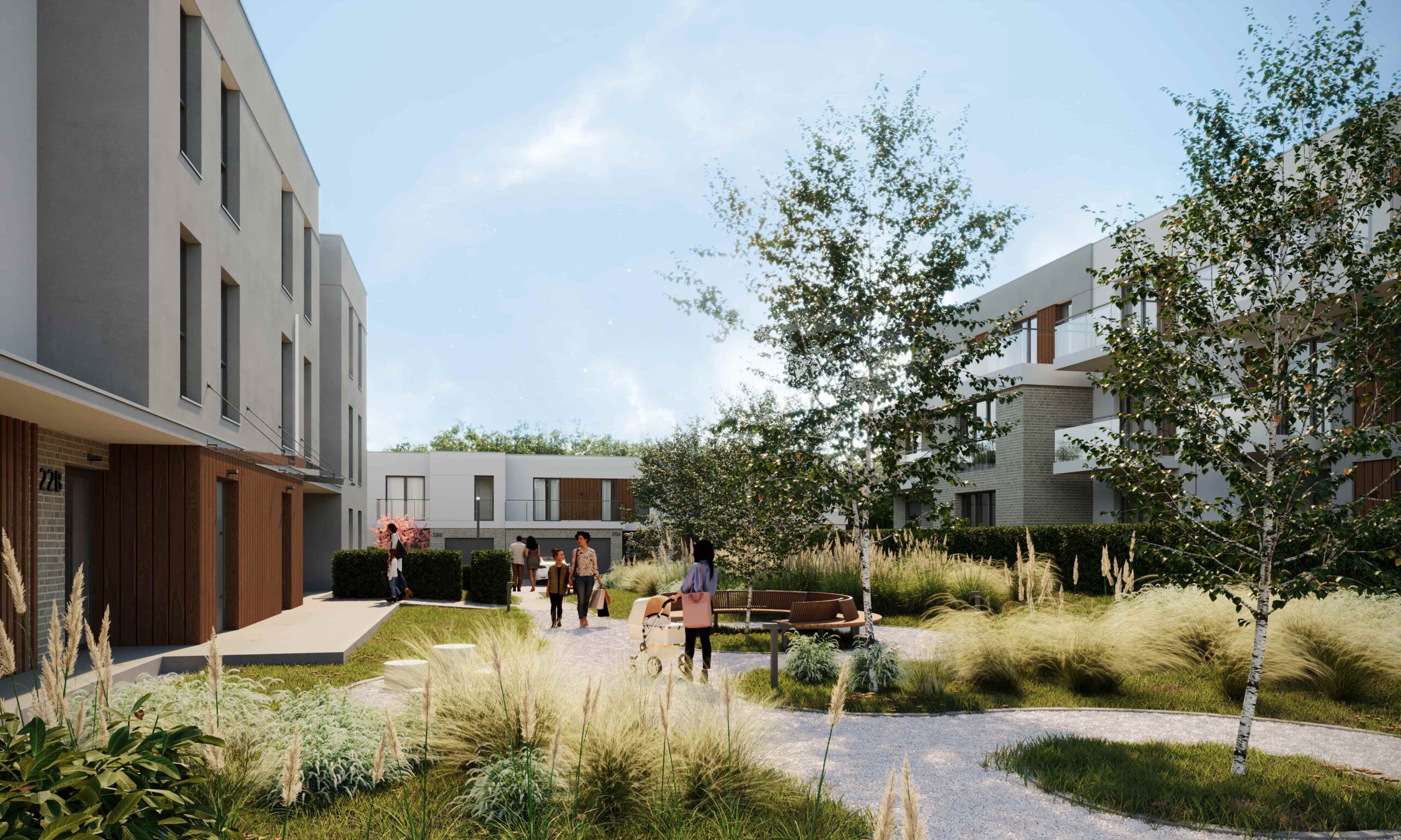 Na I etapie powstaną 2 niewielkie, bo zaledwie dwupiętrowe, budynki, w których znajdzie się 32 mieszkań z balkonem oraz 8 domów z ogrodem w zabudowie szeregowej. Budynki charakteryzują się kwadratowymi bryłami z płaskimi dachami. Minimalizm w formie odzwierciedla współczesne dążenie do prostoty i ma zapewnić mieszkańcom poczucie harmonii i spokoju.